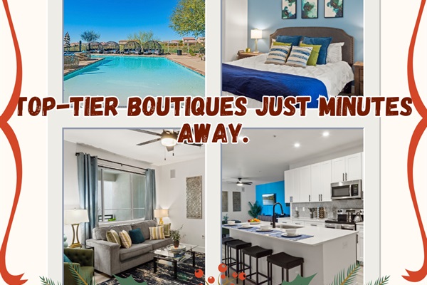 Celebrate Thanksgiving in comfort with a pool, fitness center, rooftop terrace, scenic trails, and easy access to golf, restaurants, and shopping.