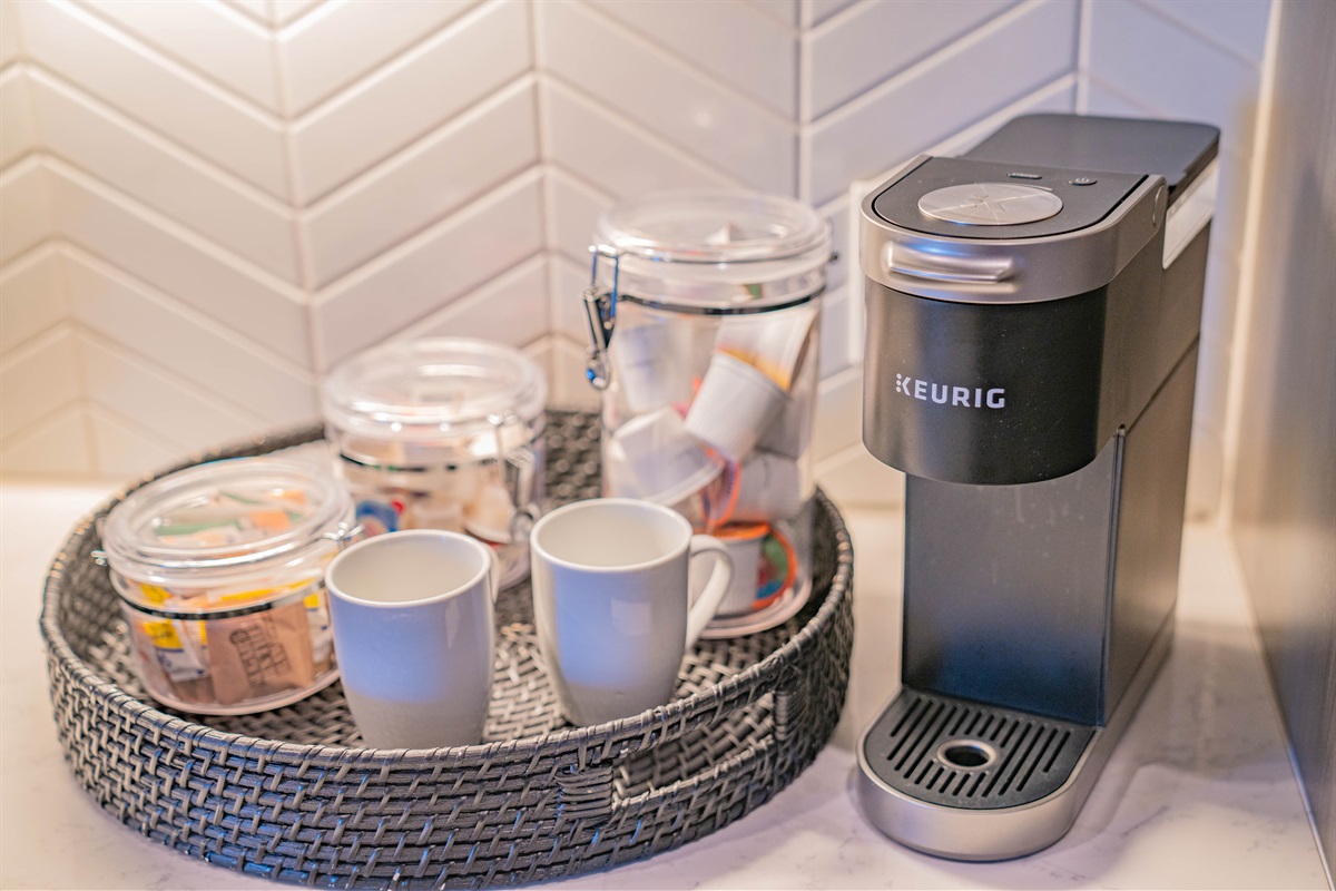 ☕ Keurig (flavored K-pods, tea, sugar)